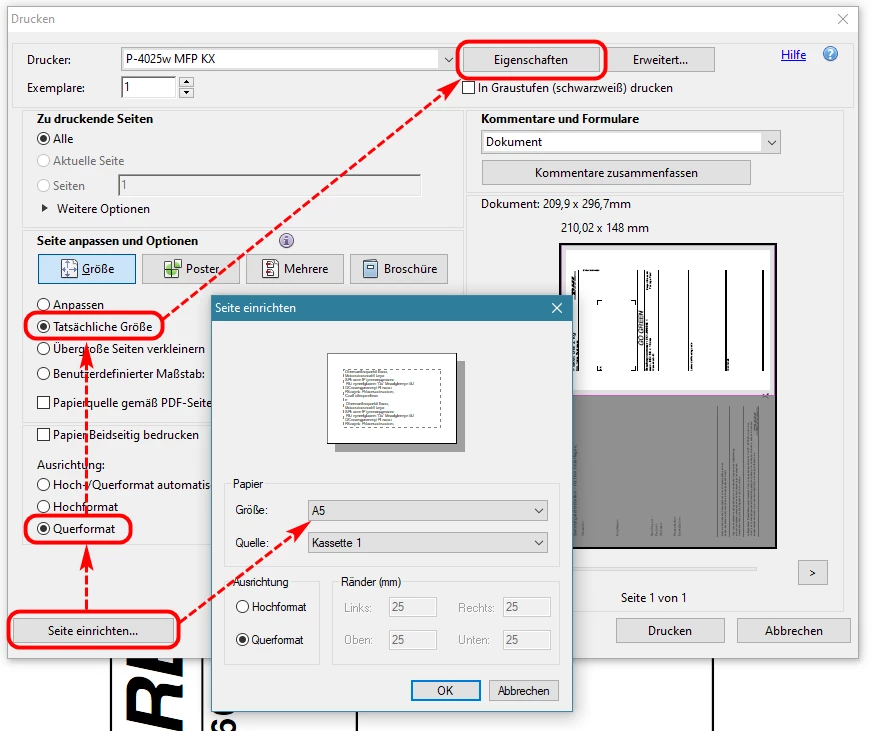 Print a screenshot on the upper side of a Din A4 page.