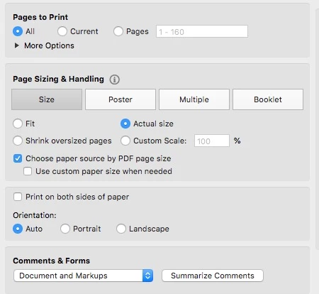 I have posted a pic of my print settings. Macbook, High Sierra, Adobe Pro DC, Brother 5200DWT printer. The PDF files I print are always a mixture of ltr and lgl pages, which is why I select - Choose paper source by PDF page size.
