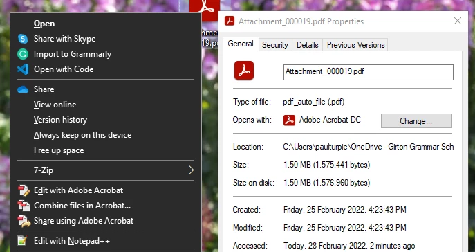 When Acrobat DC is the default application for opening PDFs, if I right-click on a PDF document there is only an option to Open the file.