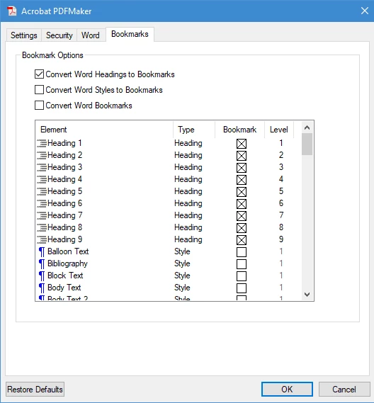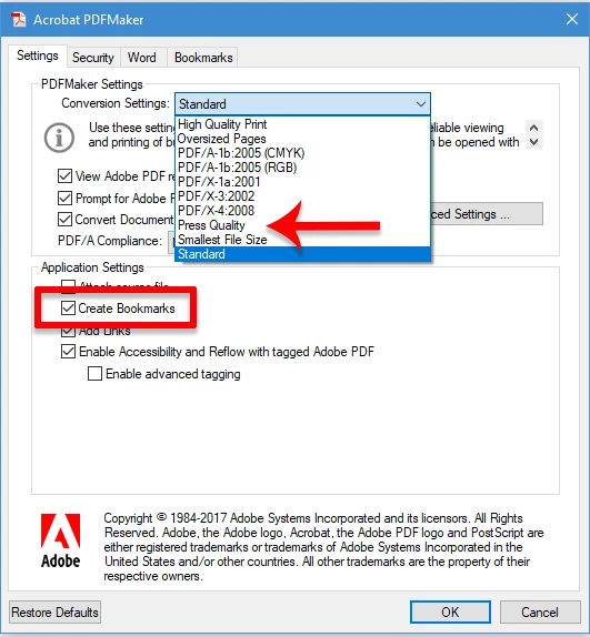print to pdf from word high quality and automate bookmarks