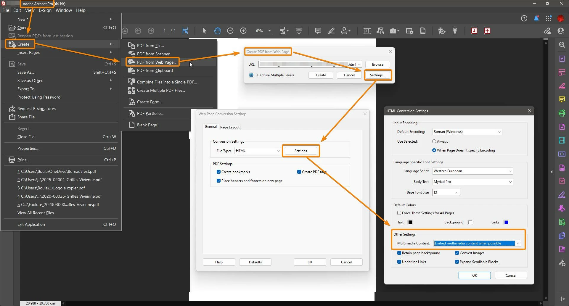 I have a web page with some mp3 files(very short files, just some words' pronunciation), the whole page being saved on my computer. I want to convert it to pdf without adding the multimedia files one by one.