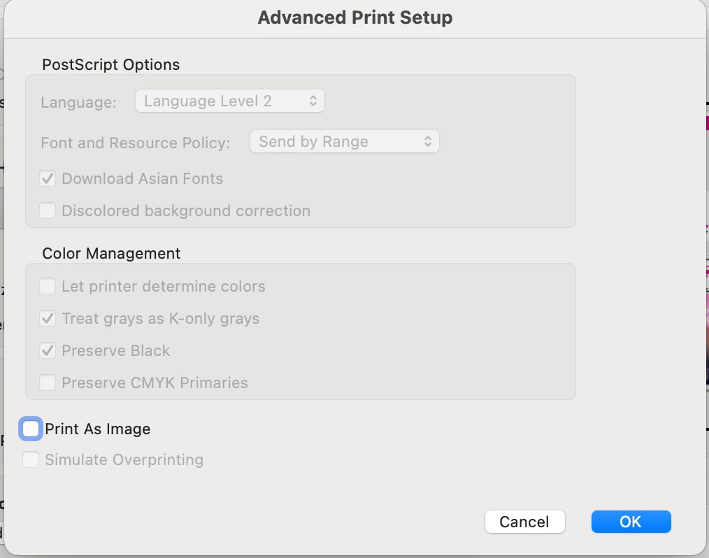 We are currently experiencing an issue with some PDF files in adobe acrobat reader version 2024.001.20604 where the file looks great on the reader itself, but when you go to print it comes out with a black background. The only places the paper is white is around text. I have tried reinstalling the app, checking for updates, different printers, various preference changes, and nothing seems to work. The only workaround I have found so far is to either use the adobe chrome extension - or preview (we are on Macs).