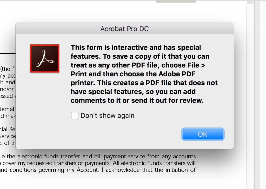 I am on a Macbook pro, running High Sierra. I have a pdf file that I need to read on my iPad running iOS 11. On the Mac, I am told that the pdf is special and I need to print to a pdf using the Adobe Printer so I can read it on the iPad. But I can find no such option. If I print to AdobePDF in the PDF printer menu, I am told I am not allowed to do that. What am I doing incorrectly?