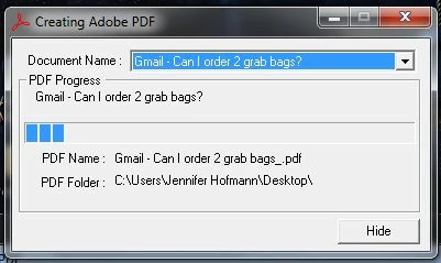 Then I can no longer print to PDF. I used to be able to do it in all my programs (Word, Quickbooks, email, webpage...). Now I go to print and it just stalls on the printing PDF page and won't print it.