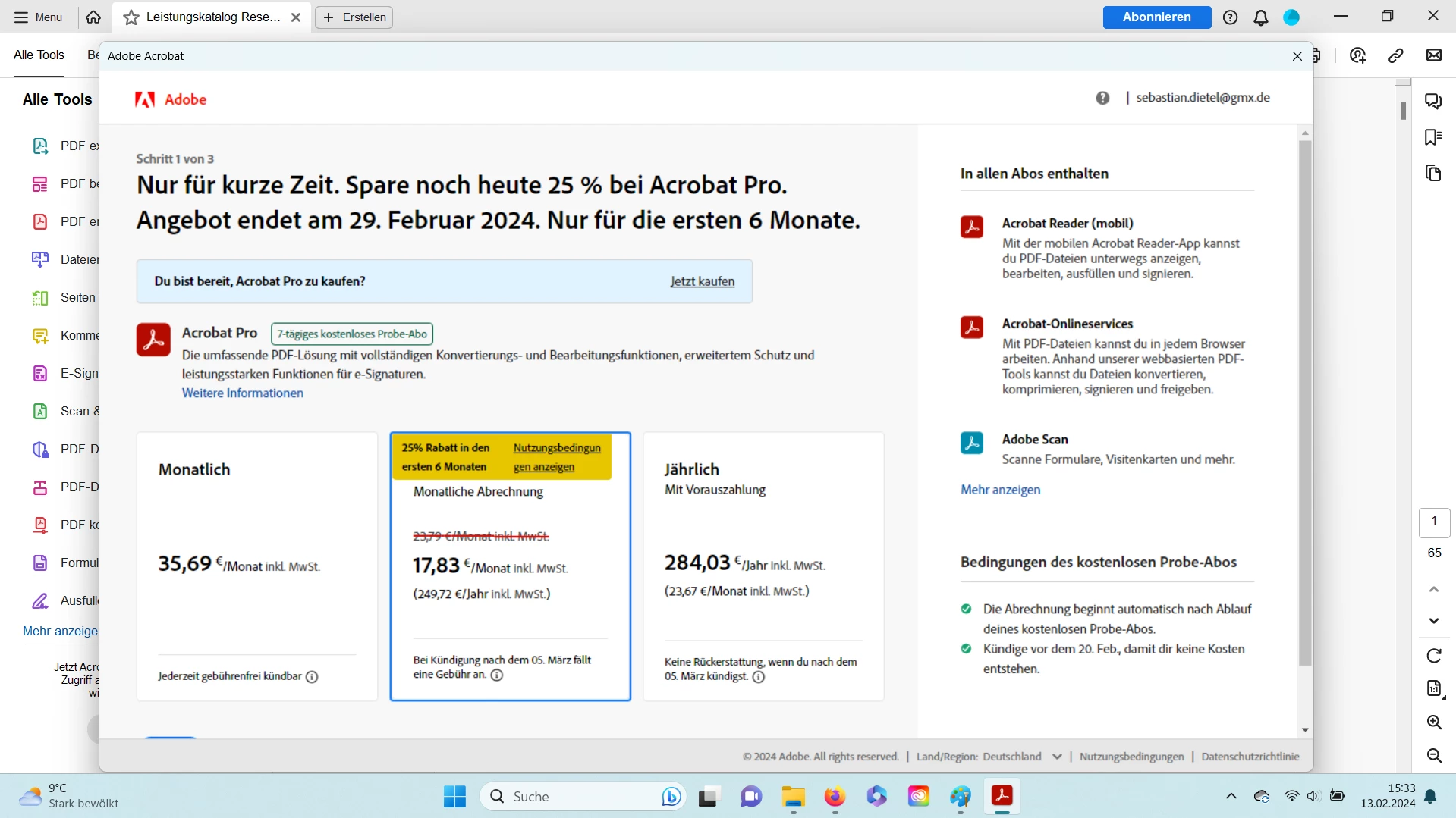 SSebastian35427706w0ajParticipantForum|Forum|2 years agoFebruary 13, 2024AnsweredProbe-Abo statt kostenloser PDF-ReaderForum|Forum|2 years agoFebruary 13, 20242 replies1113 viewsHallo, ich möchte lediglich das kostenlose Angebot von PDF-Reader nutzen. Ich möchte nur einige Dokumente an meinem Computer ausfüllen und lesen. Nur wird mir das leider verwehrt und ich soll ein Probe-Abo abschließen.Modern AcrobatModern ViewerPDFGeneral troubleshooting