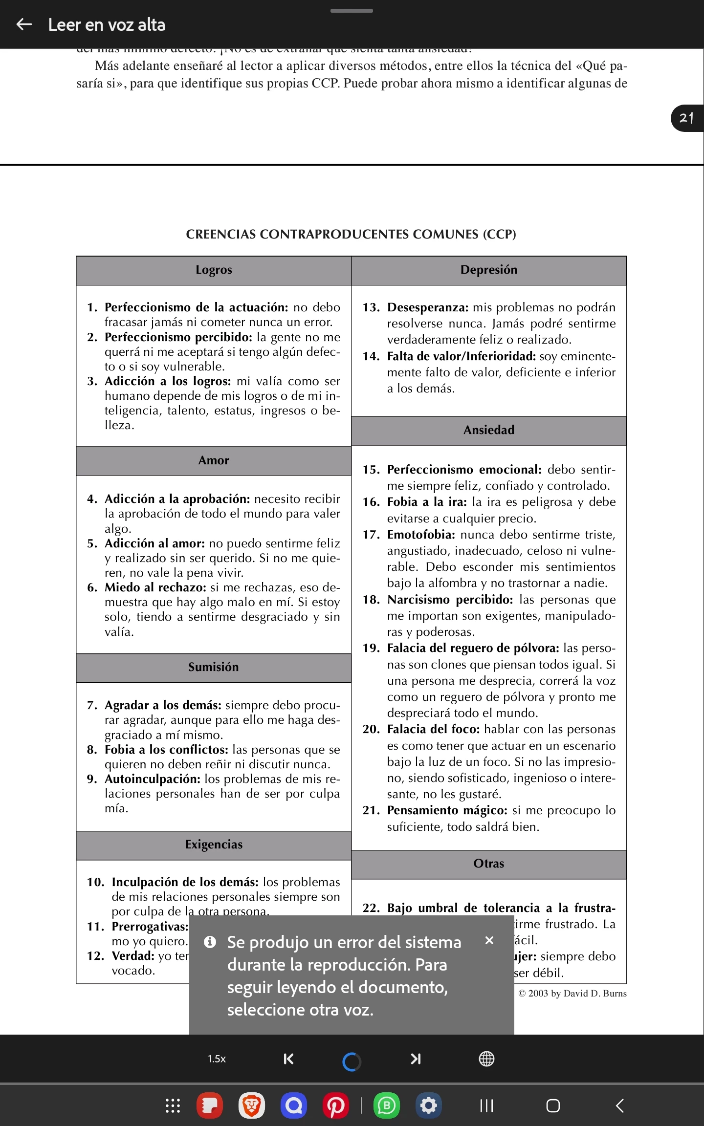 Problemas con la opción de lectura de voz alta