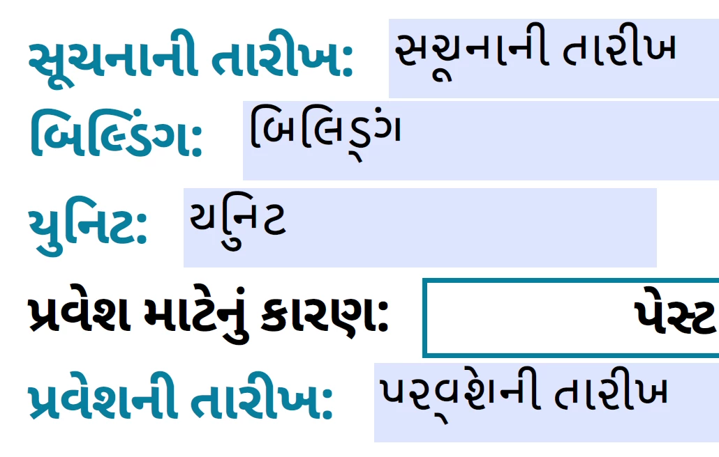 The issue: The forms need to be filled in the document’s language, so the Gujarati form will have the inputs filled in Gujarati, for example. Problem is, the text is not rendering correctly in the fields. Similar to when you don’t activate “World Ready Composer” in InDesign. The fonts are broken in the input fields.