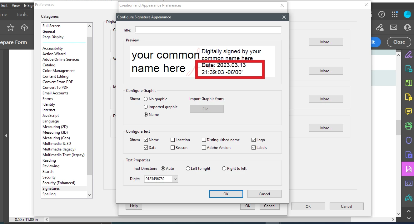 In which case, the validation process is very straight forward, and the date creation and appearance is defined with the SDK guides, like the Acrobat Digital Signature Workflow Guide.
