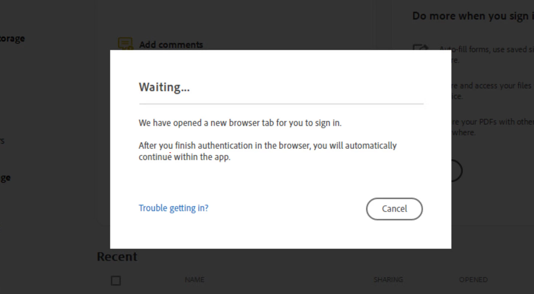 Did something change to how Purview works within Adobe recently ? When i opened a Purview locked document with Adobe Acrobat Reader, i still get the login info but when i log in nothing happens, it just stays stating ( We have Opened a new browser Tab for you to sign in ) but nothing happens, after awhile it times out and give me a " Client Application Failed to provide authentication token for HTTP Request  " now our department cant only PDFs because it wont accept out logins anymore. I would like to post pictures but i dont have permission.