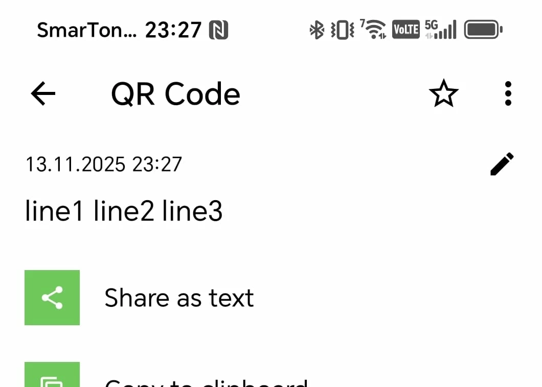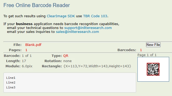 Expected Output: A QR code that decodes to three separate lines.