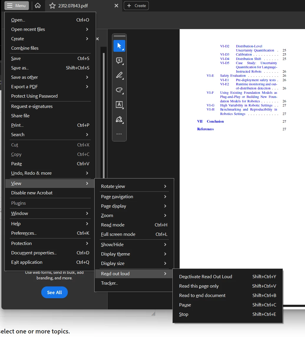 Read Out Loud (Text-to-Speech) for PDF needs to be better.