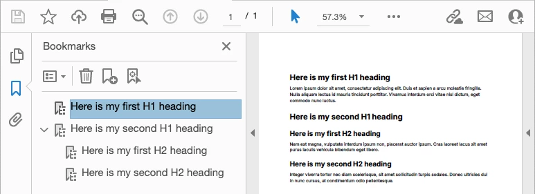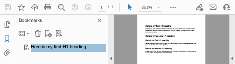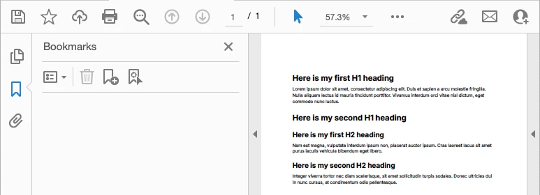 The PDF file has bookmarks in it generated based on the structure of the document. Also, no problem.