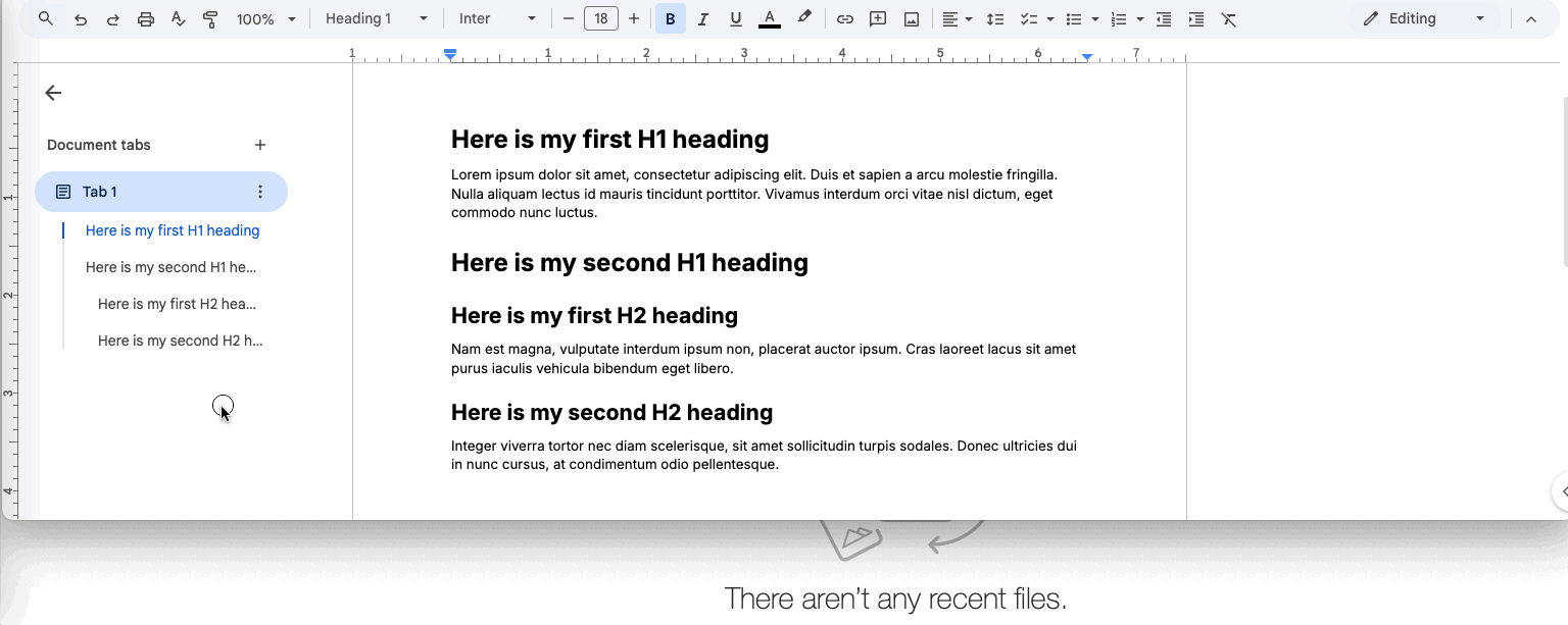 In Google Docs, let's say I create a document with a title, a couple of headings, some text, etc.