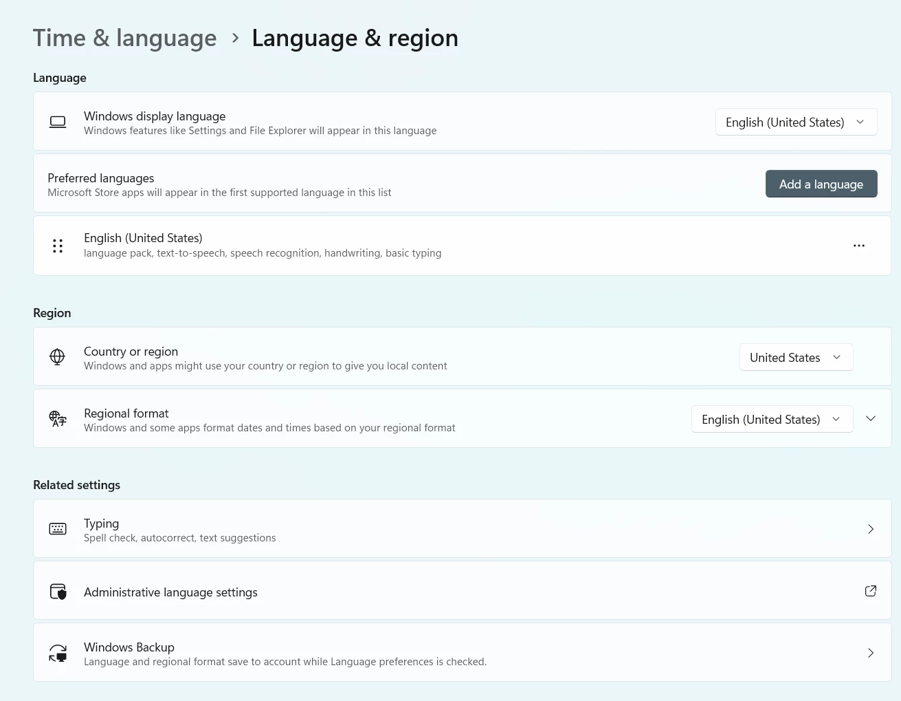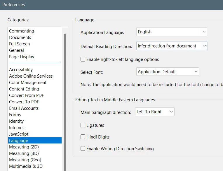 When I use Adobe Acrobat Standard 64-bit on Windows 11 where the OS language is English (United States, the country is United States, the regional format is English (United States):