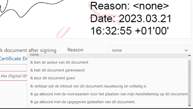 I still get my reason to sign under certificates in Dutch but I need them in English: