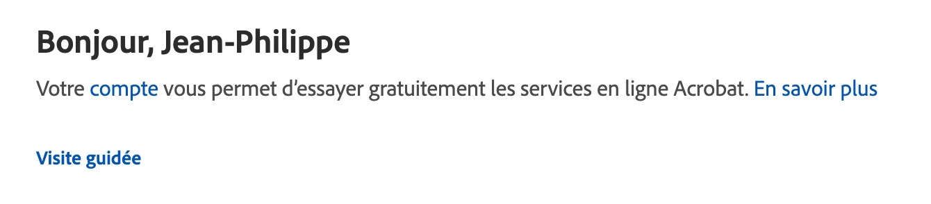 Mais quand on tente d'accéder à Adobe Create PDF par exemple, soudain le discours change par rapport à ce qui était écrit avant de souscrire l'offre. À présent, c'est seulement "Votre compte vous permet d'essayer gratuitement les services en ligne Acrobat". Et on réalise qu'on n'a droit qu'à 7 jours d'essai gratuit.