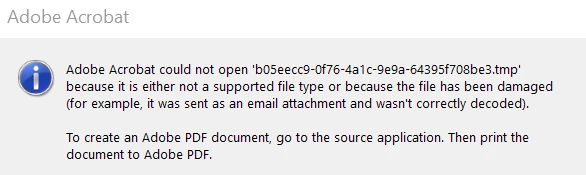 I downloaded "EaseUS Data Recovery" and found a "TMP" I believe may be the pdf document, the names is strange all #'s & letters, but the size seems right on. I recovered and saved. But I cannot open in Adobe - error below - I'm desperate. Any thoughts?? Even if I can just recover my comments. I've tried changing the tmp to pdf - Thank you
