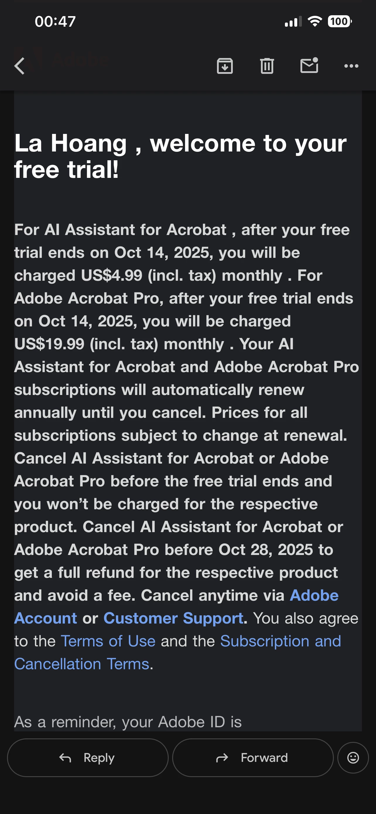 Refund after free trial