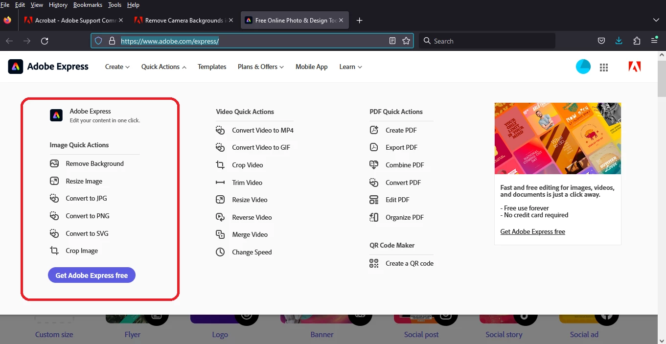 See here: https://www.adobe.com/express/