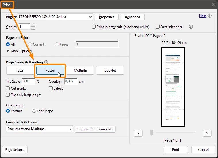 Repaginating one long pdf page into separate printable 8-1/2 x 11 pages???
