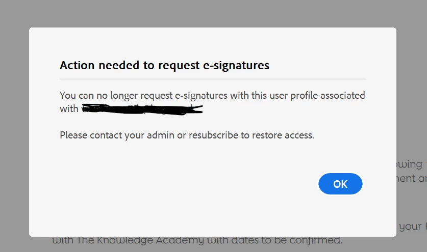 I have Adobe Pro through my organisation. When I select request e-signatures there is an infomration box saying that I do not have permissions and to contact my administrator.