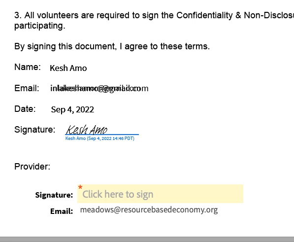 The following leads to the glitch.  The document is emailed and signed by the recipient, then I receive an email prompting me to sign as well. It is here where I see the recipients email address doubling and offset.