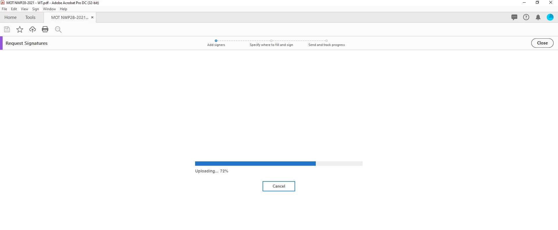 When I attempt to "Specify Where to Sign" Adobe opens a progress bar, this bar continually get stuck at 72%.