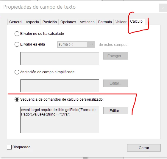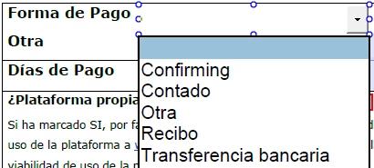 Moreover, if the person chooses "Otra" a Texbox called "Forma de Pago Otra" should be set to required. Once you written something, it should stop being required.