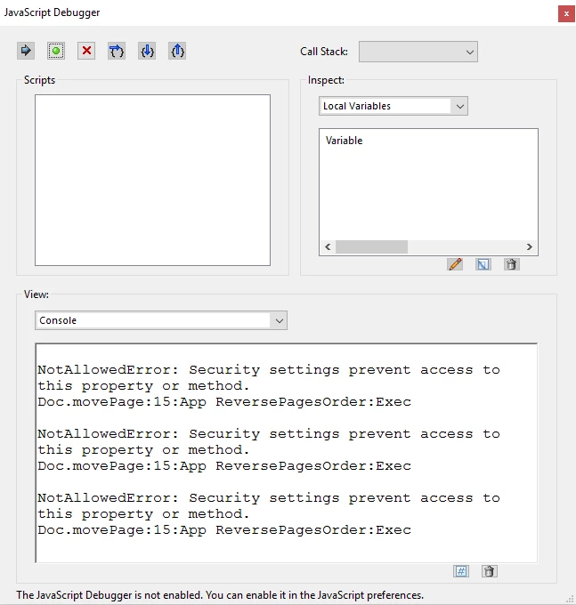 Don't mean to rehash old wounds or old threads, but thank you GKaiseril.  Your fix works in DC pro.  I added it to the javascripts folder as ReversePages.js and it works just fine.  I also tried a few other methods.  Here they are...