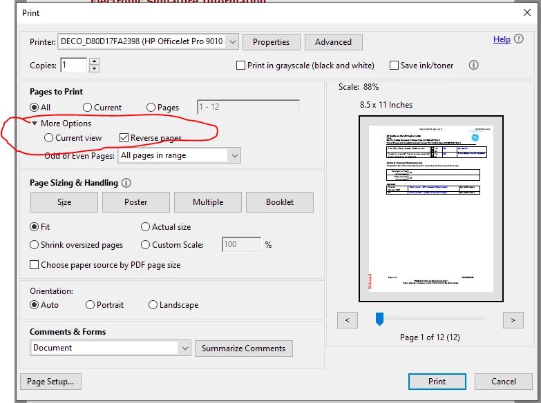 4. in "pages to print" section click on "more options".