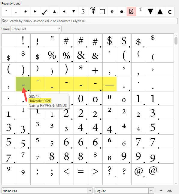 I'm not sure if this is an important detail, but I noticed that the Unicode for this character in the InDesign file is U+002D and in both PDFs the Unicode is U+0171. Below are the 2 different ways that this character is being displayed.