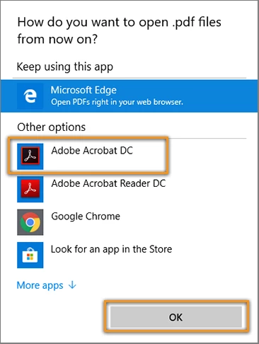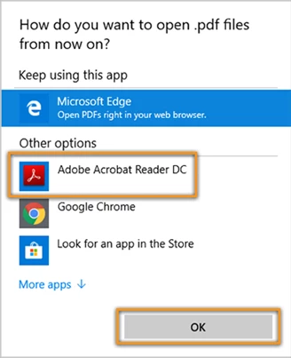 B. If you have only Acrobat Reader DC, choose Adobe Acrobat Reader DC and click OK.