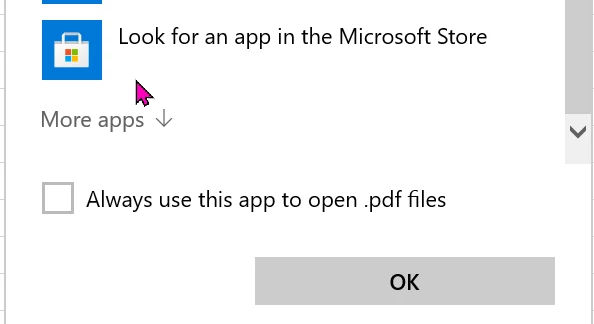 Once in a while, you may have to search for more apps if your desired program is not listed--just be sure to click the always use checkbox.