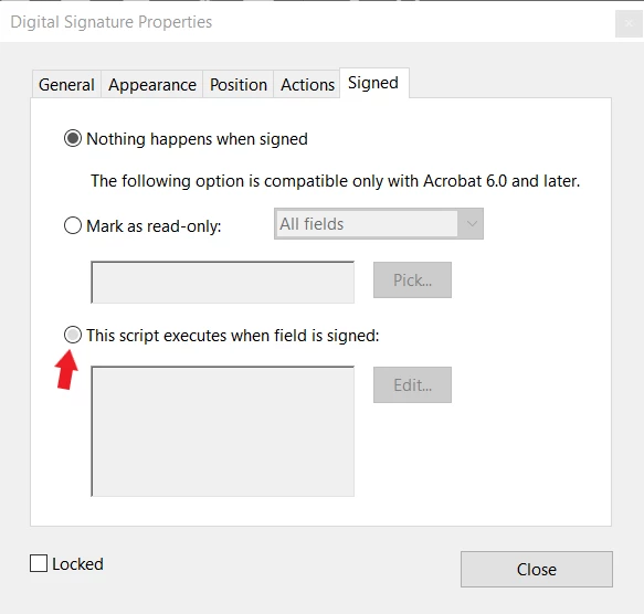 I have created a form with a button that adds a group of five text fields and one signature field to it. It is possible to add five groups. I want to make read-only all fields in a specific group after putting a signature in a signature field placed in the same group. Last hope in javascript because these fields don't exist until the button is pressed.