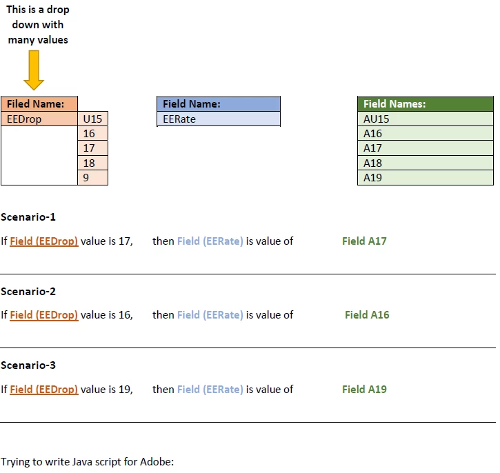 Simple The Field-B Value is 25; the Field-A value is value found in Field-C I nned Adobe Java Scrpt