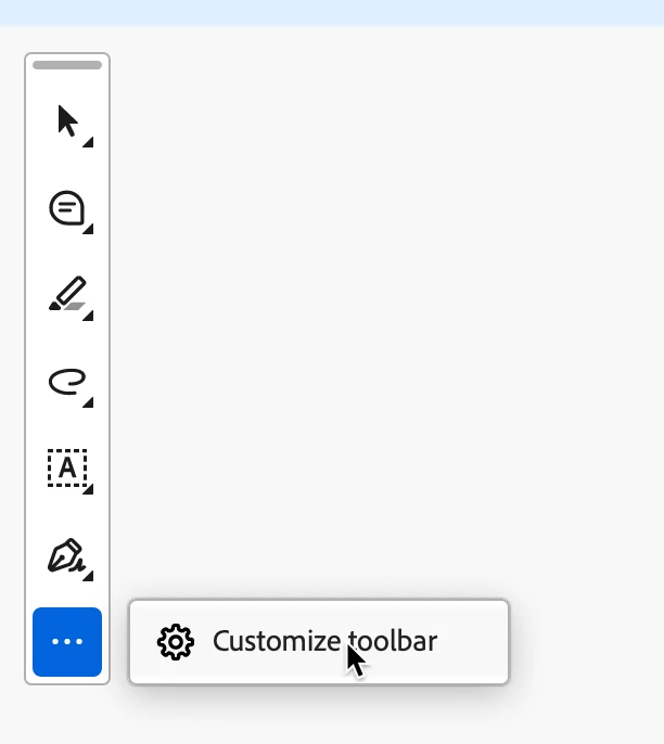 Meanwhile, you can add that icon, and any other tool icon to the floating toolbar at the top left of Acrobat’s window. Click on the ellipse at the bottom of the toolbar to make changes.