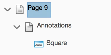 Looking at the Page Content Information, I can see that there are no annotations listed on page 6 (the first example), while page 9 shows a square annotation: