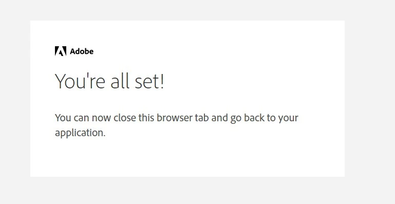 I'm an Adobe employee. Had corrupt version of Adobe on Windows 10 machine. Uninstalled completely. Bought perpetual license for personal use. Installed and entered serial #. Got to sign in page and signed in successfully. Got message "you can now close this browser and go back to application".