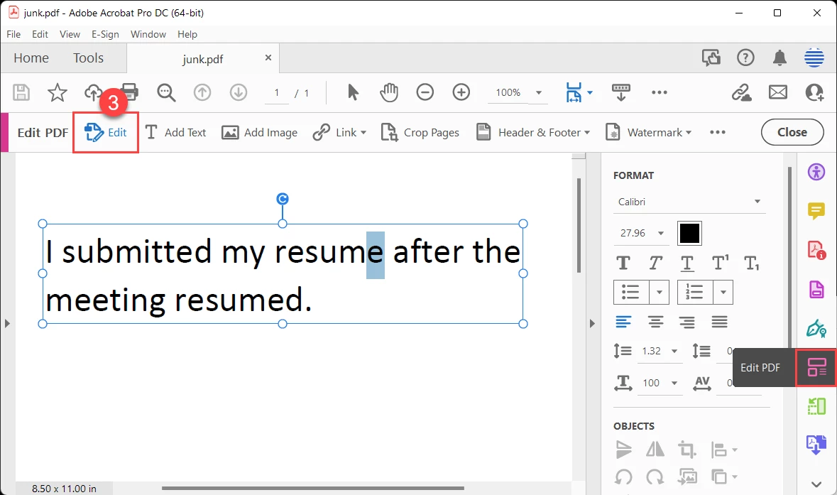 And it takes longer to do it in Acrobat, too, because Acrobat has only basic, rudimentary editing tools.