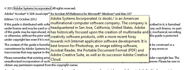 Hi, I placed a square annotation on top of my text so that a "pop up box" will show when I mouse hover the text. Like this:
