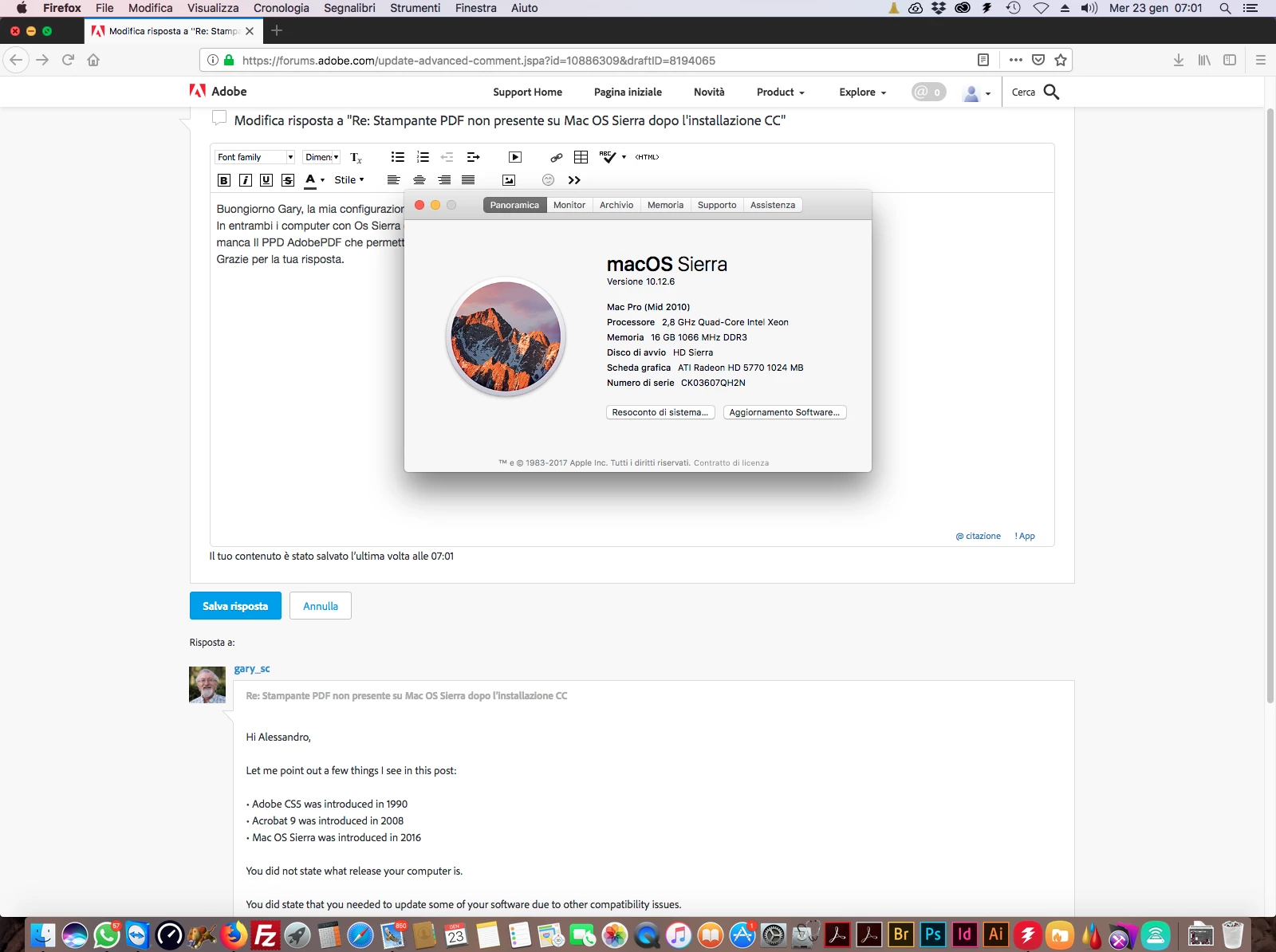 Stampante PDF non presente su Mac OS Sierra dopo l'installazione CC