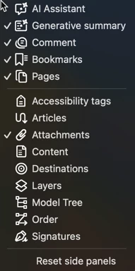 If I try to remove this, the right panel for an IA resume appears. The menu items can't be unchecked.