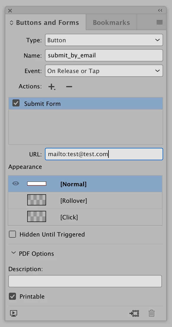 In IndesignCC 2019, I've made a PDF form with a submit form action that sends to the url mailto:email@email.com