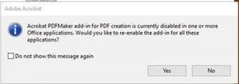 Suppress Adobe PDFmaker is disabled in Outlook