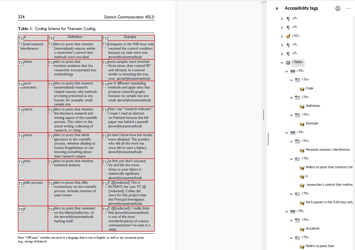 I'm getting a Table-Headers check failure in the Accessibility report. When I check in the Accessibility tags area, the TH tags are properly set. Yet, when I go into the Reading Order, the headers are all set as TD and when I try to edit them to TH with the appropriate scope, they snap back to TD. How can I get the headers to properly tag and stop defaulting back to TD?