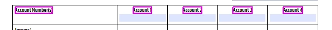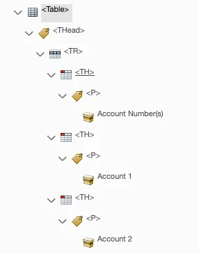 I have a table with text form fields in the Header Row. When I click on the whole table tag, it looks like it is tagged, as seen here: