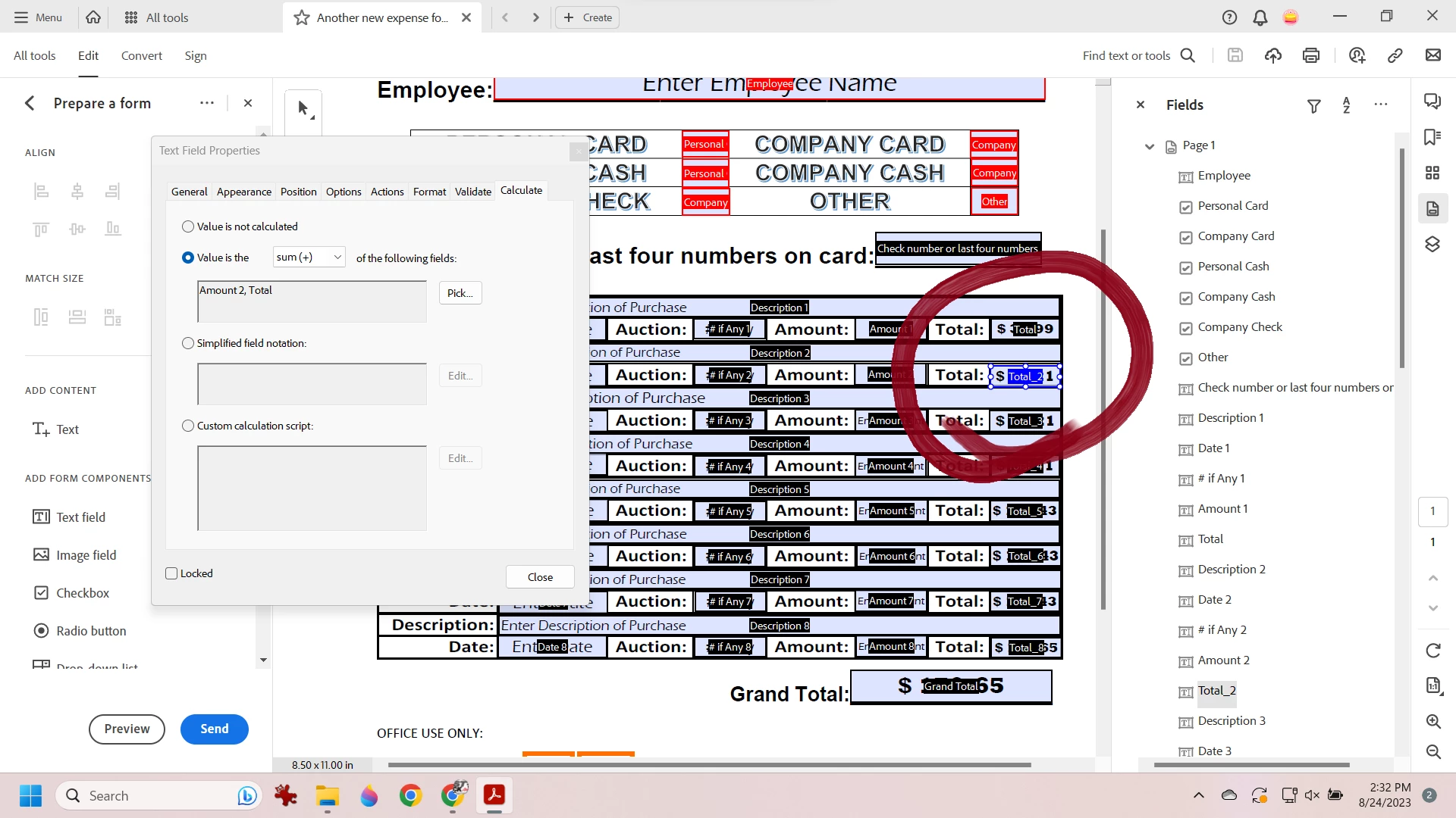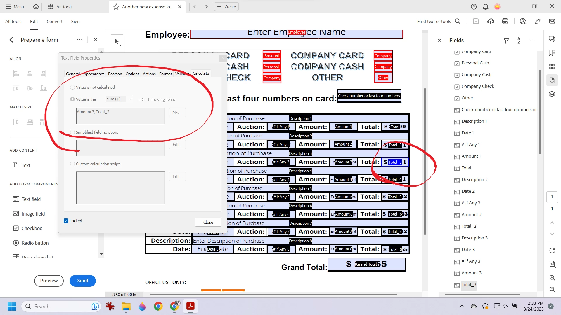 Using, say, an expenses form ... The first receipt total box will have data entered, then the running total. If the second and third etc. are not used then they should remain blank and not calculate anything. I have attached a picture, I hope what I'm saying makes sense.