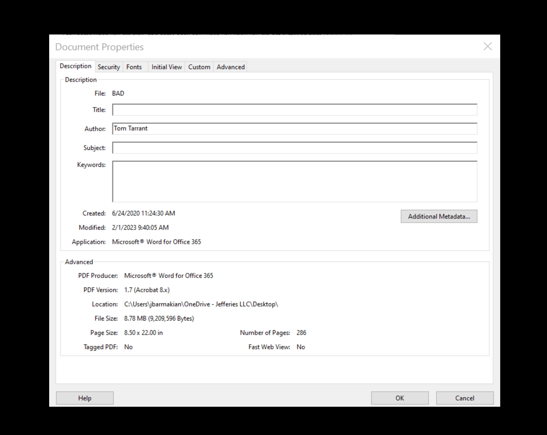 • The PDF was created by combining multiple other PDFs together. It is a very large document (see photo for a screenshot of the description)