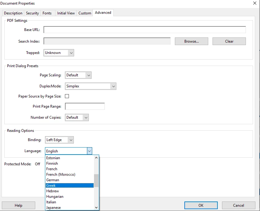 It is worth noting that your document's language should be set to the language you want it to be read in. If it is a Greek text document, the doc language should be set to Greek.