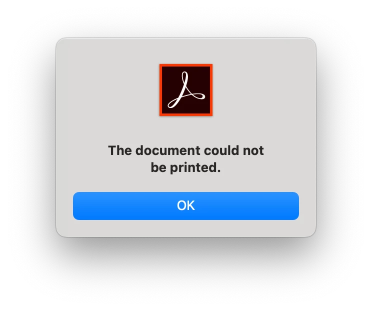 I have tried clean install, print as image, changing security settings, calling adobe customer support, new Mac profile. My startup drive is not acse-sensitive nor is it encryted.
